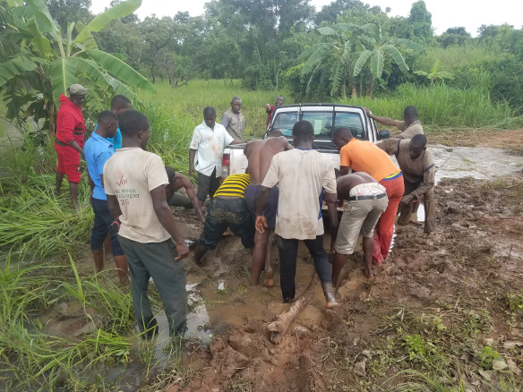 Sheini transport stekjes blijft steken 23 september 2018 door 40dagenaktie ← Vorige afbeelding 18-09-06 Transport van bamboestekjes blijft in Sheini steken in de modder: regentijd!